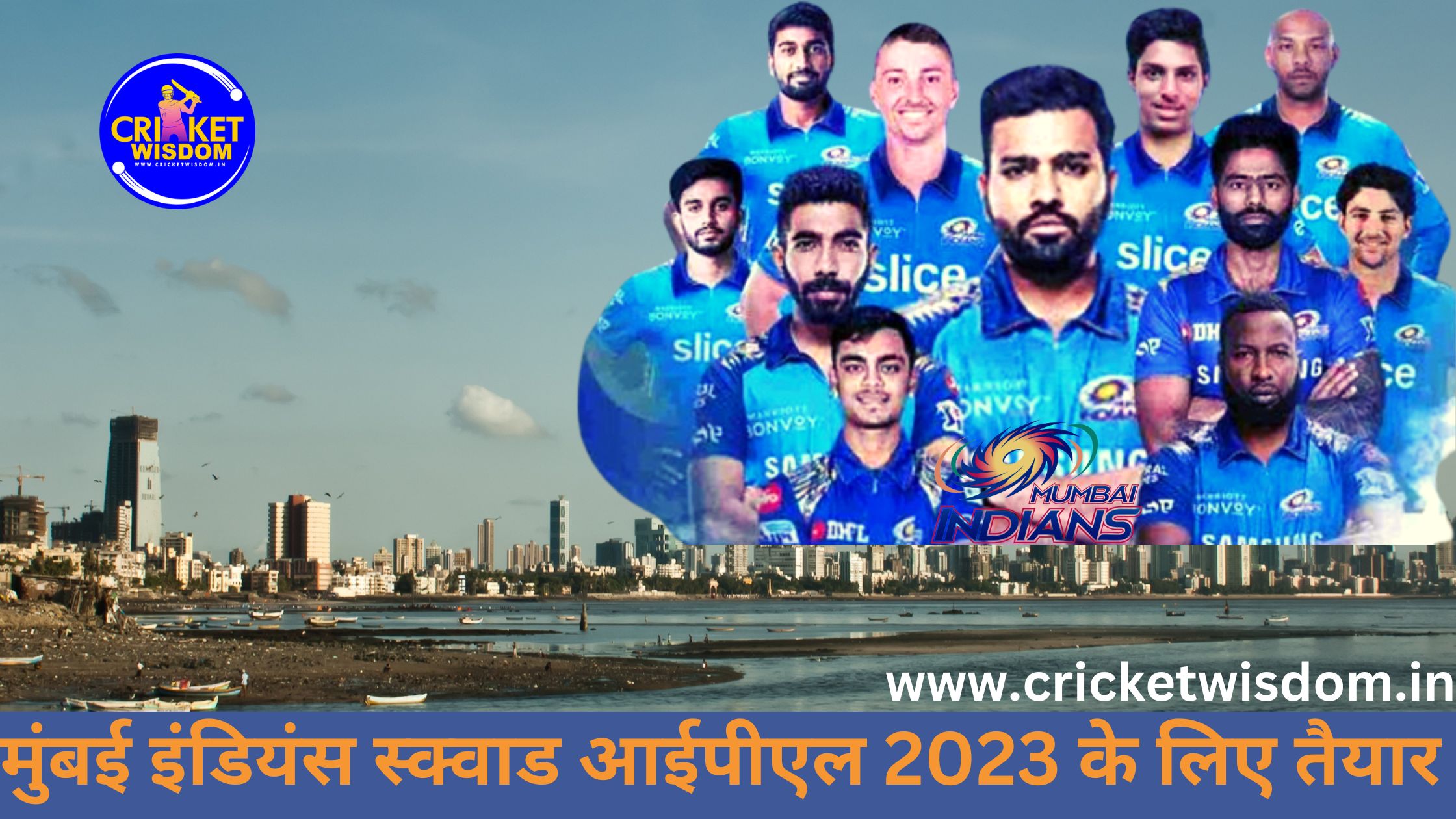 Mumbai Indians Team एम आई आईपीएल (MI IPL) 2023 की नीलामी की तैयारी में, कीरोन पोलार्ड, अनमोलप्रीत सिंह, आर्यन जुयाल, बासिल थम्पी, डैनियल सैम्स, फैबियन एलेन, जयदेव उनादकट, मयंक मारकंडे, मुरुगन अश्विन, राहुल बुद्धी, रिले मेरेडिथ, संजय यादव और टाइमल मिल्स को रिलीज़ किया गया। आईपीएल 2023 के लिए, रॉयल चैलेंजर्स बैंगलोर ने (Royal Challenger) जेसन बेहरेनडॉर्फ को मुंबई इंडियंस (Mumbai Indians) में ट्रेड किया। मुंबई इंडियंस टीम 2023 खिलाड़ी सूची रिटेन किए गए खिलाड़ी
