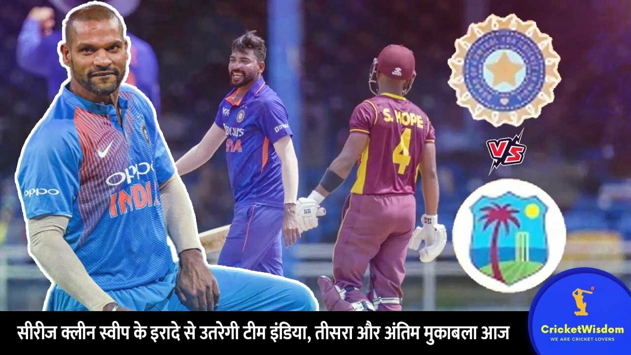 भारत और वेस्टइंडीज के बीच चल रही तीन एकदिवसीय मैचों की श्रृंखला मैं भारत ने 2-0 की अजय बढ़त हासिल कर ली है और तीसरे एकदिवसीय मैच Wi vs Ind 3rd Odi 2022 में भारत 3-0 से श्रृंखला मे क्लीन स्वीप के इरादे से मैदान में उतरेगा। इस एकदिवसीय श्रृंखला का तीसरा और अंतिम मुकाबला पोर्ट ऑफ स्पेन के मैदान पर ही खेला जाएगा।