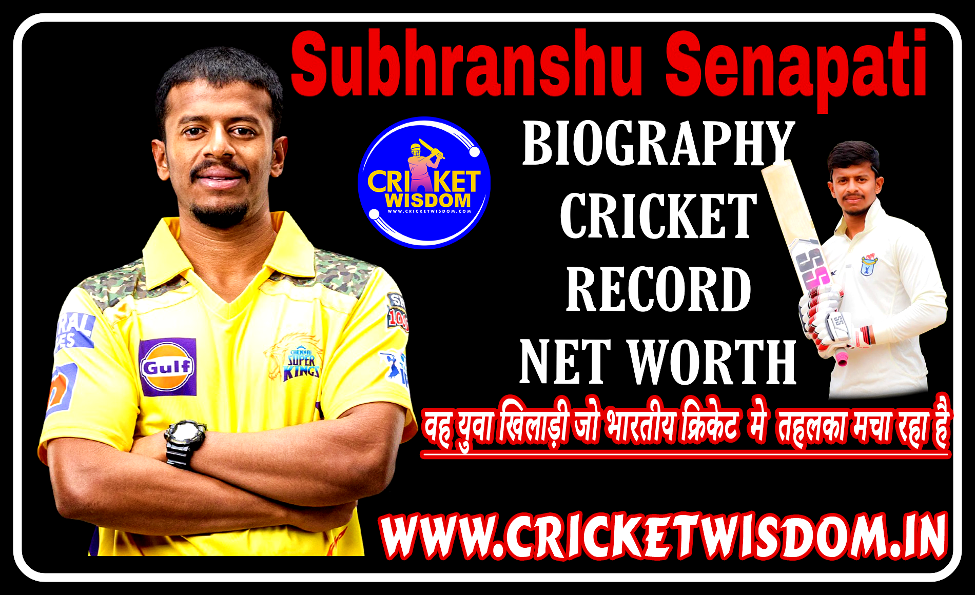 भारतीय घरेलू क्रिकेट खिलाड़ी Subhranshu Senapati का जन्म 30 दिसंबर 1996 को भारत (India) के ओडिशा राज्य (Odisha State) में हुआ था और वह मुख्य रूप से दाएं हाथ के बल्लेबाज के रूप में घरेलू क्रिकेट और आईपीएल फ्रेंचाइजी क्रिकेट खेलने के लिए जाने जाते हैं। और उन्होंने साल 2016 में घरेलू क्रिकेट और साल 2022 में आईपीएल फ्रेंचाइजी क्रिकेट खेलना शुरू किया। और घरेलू क्रिकेट ओडिशा टीम के लिए खेलते हैं जबकि आईपीएल क्रिकेट चेन्नई सुपर किंग्स (CSK) टीम के लिए खेलते हैं।