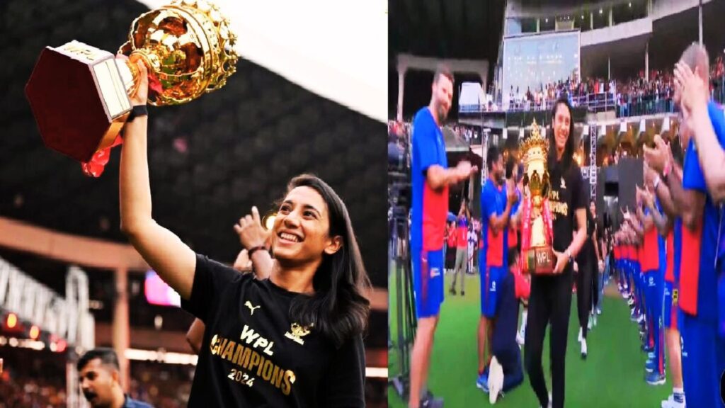 WPL 2024 Smriti Mandhana: आरसीबी (RCB) की मेंस टीम ने एम चिन्नास्वामी स्टेडियम (M Chinnaswamy Stadium) में आरसीबी अनबॉक्स इवेंट (RCB Un box Event) के दौरान स्मृति मंधाना (Smriti Mandhana) की ब्रिगेड का जोरदार स्वागत किया। डब्ल्यूपीएल 2024 (WPL 2024) का खिताब जीतने वाली आरसीबी टीम (RCB Team) को पुरुष आरसीबी टीम ने गार्ड ऑफ ऑनर (Men’s RCB Team Guard of Honor) दिया। उनका वीडियो तेजी से सोशल मीडिया पर वायरल हो रहा है जिसे फैंस काफी ज्यादा पसंद कर रहे हैं।